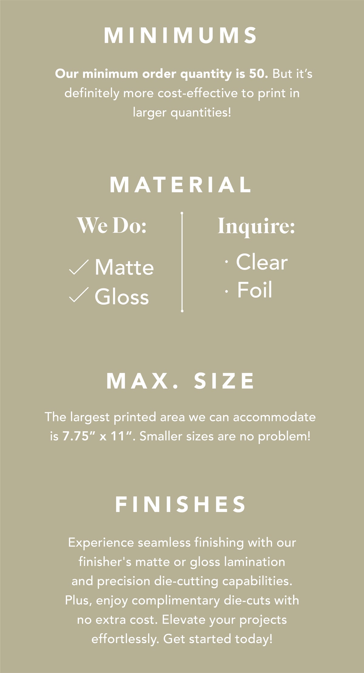 We’ll help measure and customize your labels to fit your packaging perfectly, ensuring a seamless application.